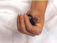 5.像卷席子一样将泥片卷起,把一端捏实成为花枝,一端成为花心。 |