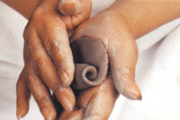 2.手掌不断捏压使泥团没有空气。 |