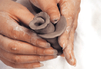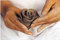 徒手捏制法所选择的泥料要软硬适宜,过于干燥不宜成型也容易龟裂。反之陶土太软作品成型后容易坍垮。此外一件作品也不可捏制过久,因为手温会使陶土的水分蒸发,减少可塑性。